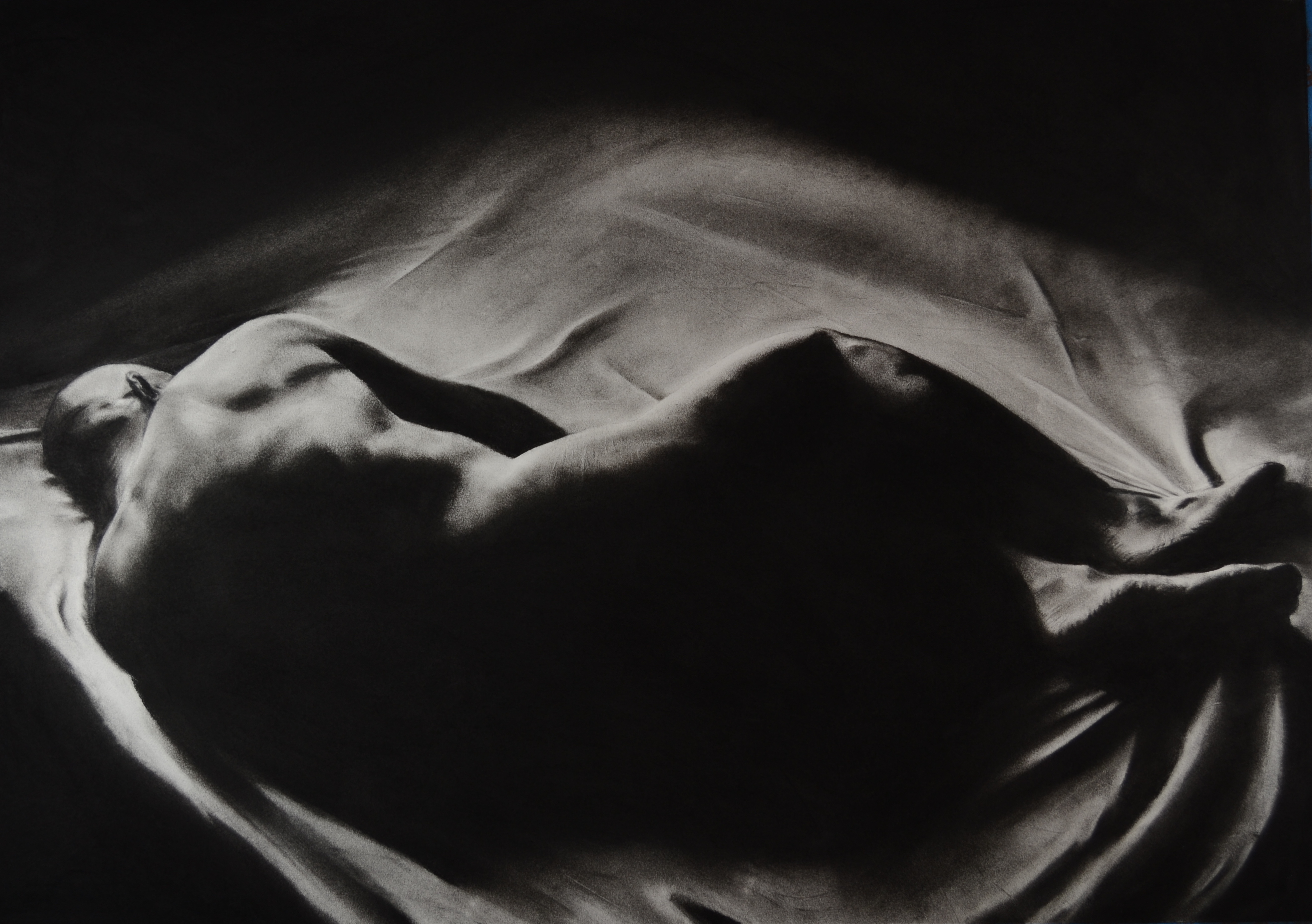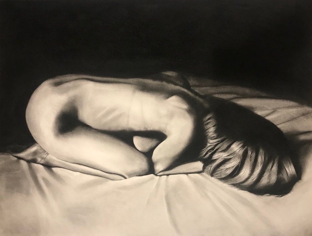 Falling Through 2020 charcoal on paper 96 x 42 inLooking Past 2019 charcoal on paper 96 x 42 in Lightweight Charcoal on Paper 42 x 96 in 2020Only when I wake do I know it was a dream 2019 Charcoal on paper 34.5 x 69 in. Redoubt 2018 Charcoal on paper 36 x 42 in. In the Crucible 2019 Charcoal on paper 42.5 x 91 in.Into the void 2019 Charcoal on paper 42.5 x 88 in.
